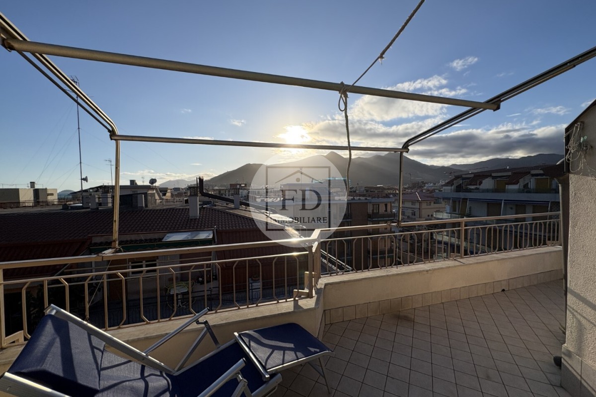 Un ampio terrazzo angolare che prende tutto l'appartamento, perfetto per godersi il sole e pranzare fuori in totale relax.