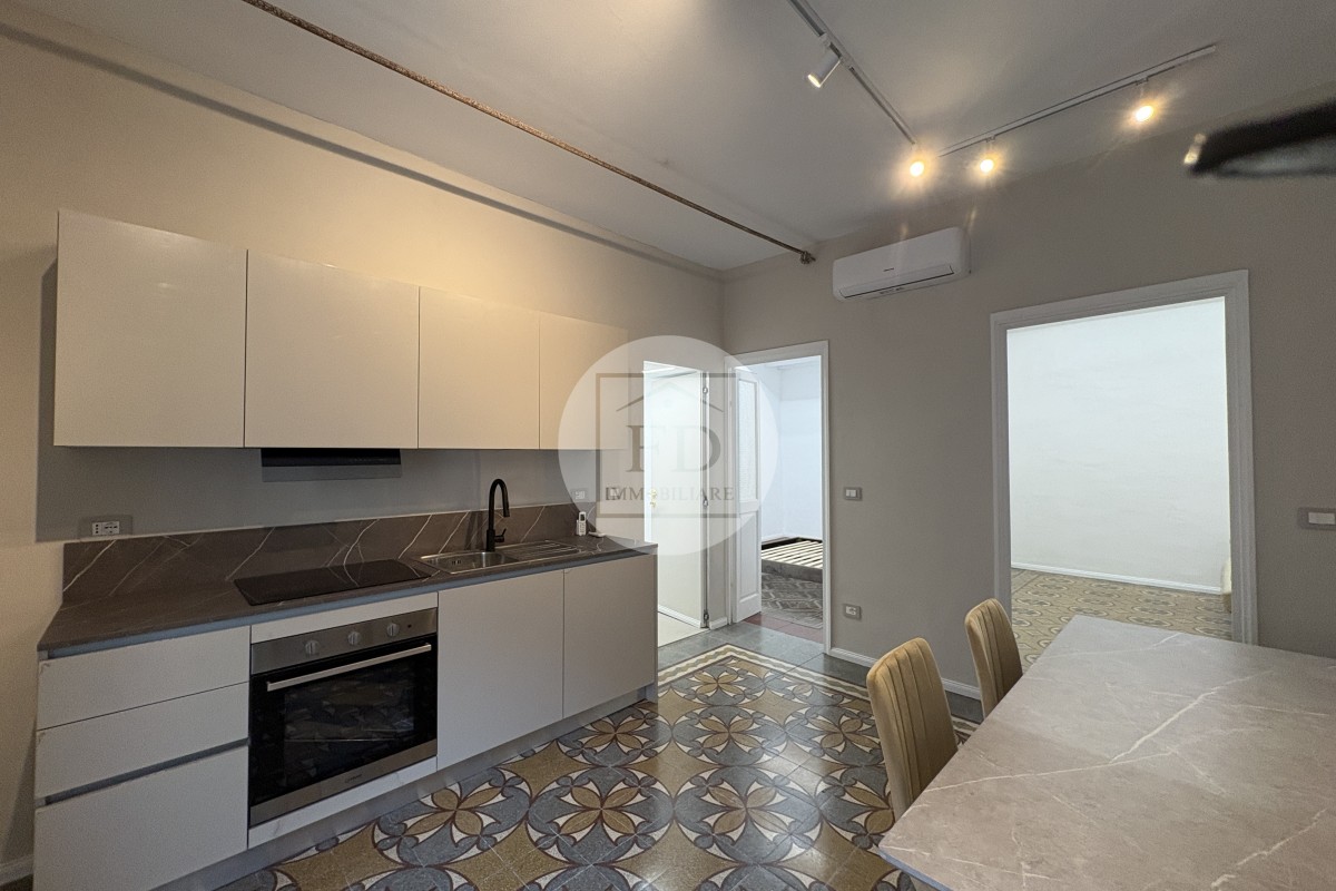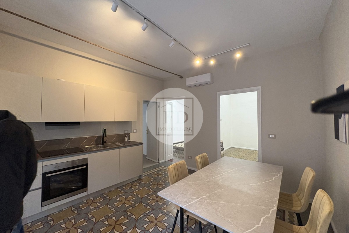 L’immobile è stato ristrutturato parzialmente, con un intervento attento e rispettoso dell’identità originaria dell’abitazione: la proprietà ha infatti scelto di mantenere intatte le caratteristiche storiche, valorizzando elementi di pregio quali i soffitti a volte e i pavimenti originali in cementine esagonali e decorate (graniglia/cemento decorato), tipici delle abitazioni tra gli anni ’20 e ’50, che conferiscono all’alloggio un fascino autentico e senza tempo.